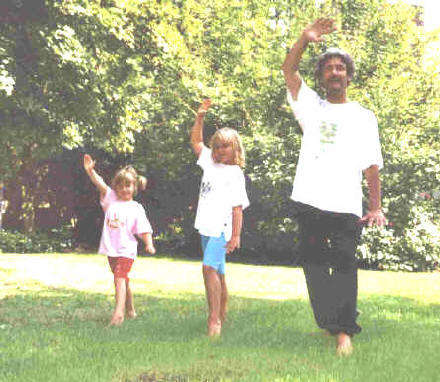 Hier sieht man Utes Sprößlinge Elina, Anna mit Stephan beim "Kranich breitet die Flügel aus". Kinder können beim Tai Chi Zentrum kostenlos mitmachen. Mehr zu der Kinderzielgruppe Tai Chi für Kinder |
