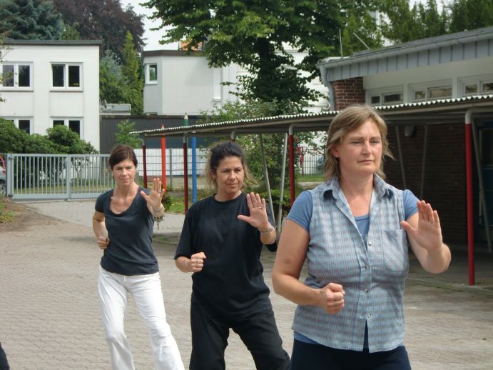 Erstmalig fand ein Wochenend-Seminar in Hamburg direkt vor einer Intensiv-Woche in Hützel statt - eine gute Idee wie sich zeigte. Auch wenn das Seminar mit nur 15 Teilnehmenden nicht ausgebucht war, werden solche von nun an regelmäßig angesetzt - ca. zweimal jährlich. Dadurch verbilligt sich z. B. die Ausbildung, weil ohne zusätzliche Anfahrt von weither mehr Stunden absolviert werden können - statt 55 Stunden nun 80 Stunden auf einmal. Auf diesem Wochenend-Seminar wurde die gesamte Tai-Chi-Langform durchgesprochen einschließlich der China-Standards. Auch wurden wieder viele grundsätzliche Fragen diskutiert.